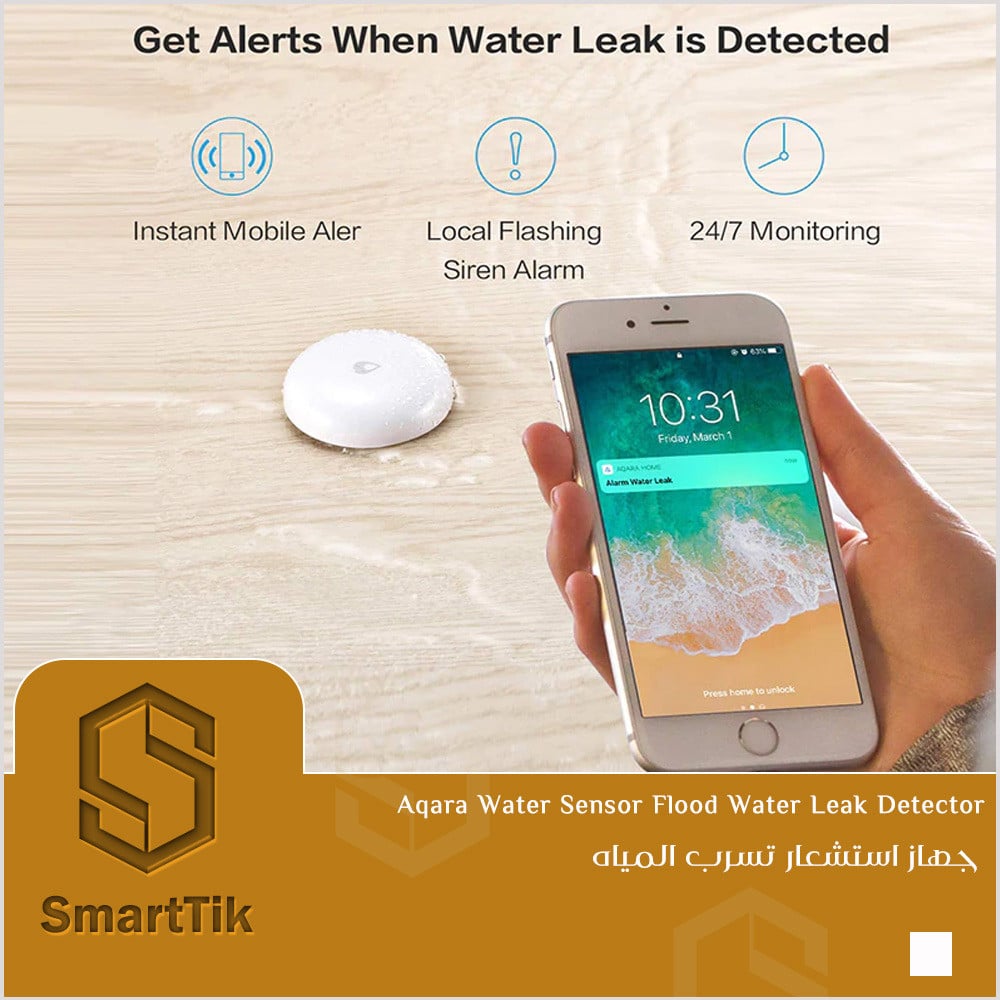عندما وجود تسرب للماء و مستوى الماء أعلى من 0.5 مم ، سيقوم المستشعر بتنبيهك حيث سيتلقى تطبيق هاتفك المحمول معلومات بوجود تسرب ، لتذكيرك باتخاذ الإجراء المناسب ،