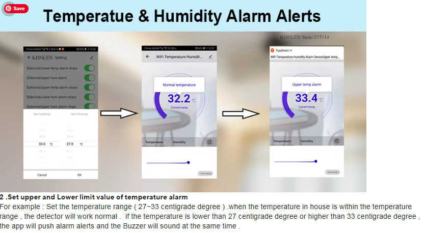 - إذا تجاوزت درجة الحرارة أو الرطوبة النطاق الذي قمت بتحديده مسبقًا (أعلى أو أقل)، يتم: