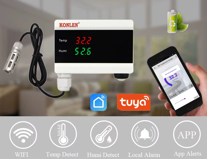 - قياس فوري ودقيق: يقوم الجهاز بقياس درجة الحرارة والرطوبة المحيطة بشكل مستمر باستخدام مستشعرات متقدمة.