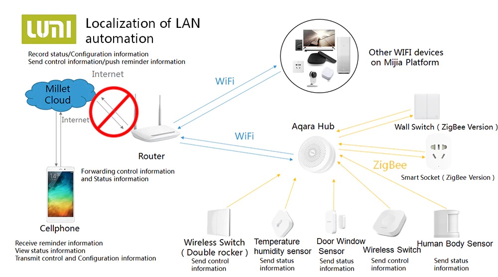 - يدعم الجسر الاقتران بجميع اجهزة Aqara من شوامي اللتي تعمل بتقنية الزغبي ZigBee
